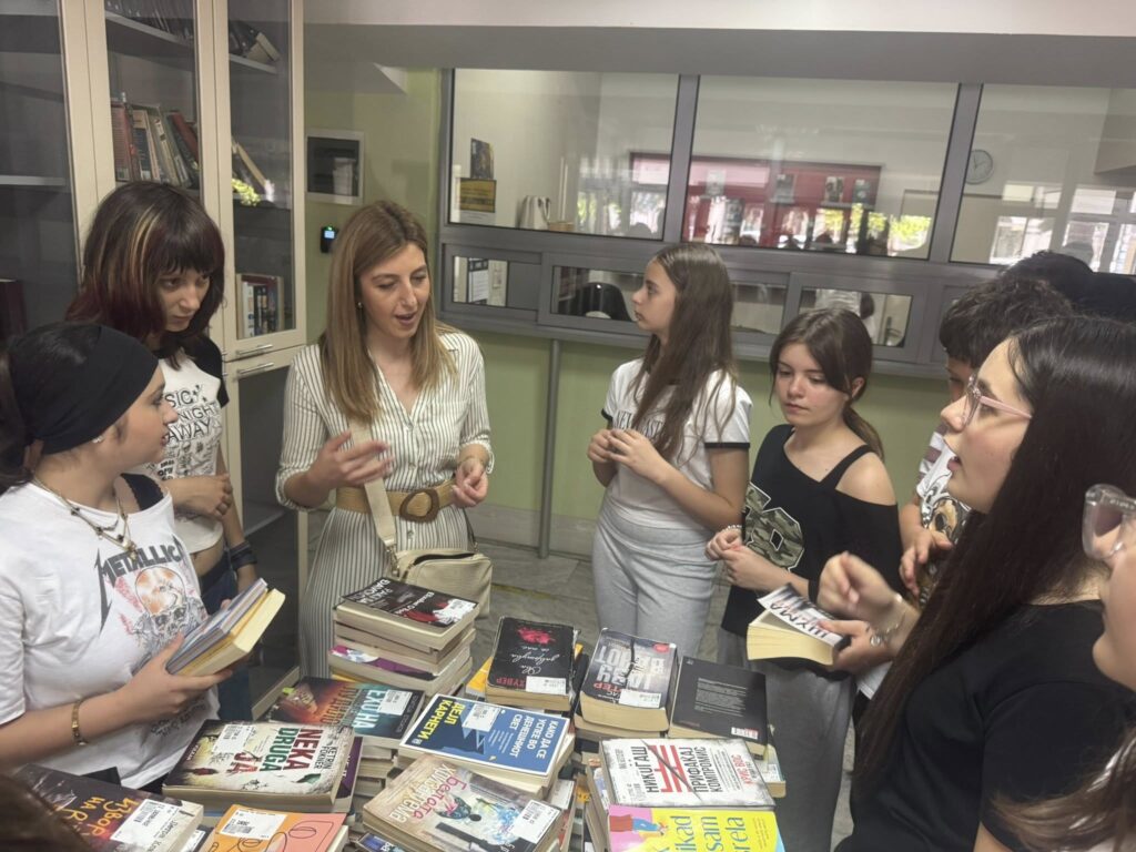 По повод Ден на културата ја посетија учениците од ООУ”Браќа Миладиновци” во придружба со нивната професорка Ивана Денковиќ. Старите машини, историјата на Библиотеката но и најновите книжевни изданија измамија насмевки и многу прашања. Љубовта кон книгата беше мотив да го посетат и Одделот за деца и да другаруваат со книгите во тек на летниот распуст.